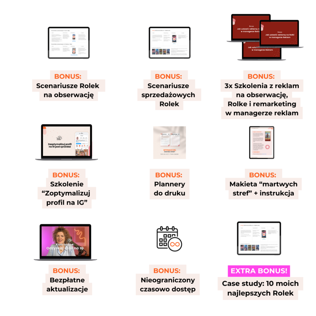 Nagrania przygotowane przez Olę Kolak, specjalistkę od reklam na FB, która pokaże jak ustawiać reklamy na Rolki w managerze reklam (reklamy na obserwację, na Rolkę i na remarketing).